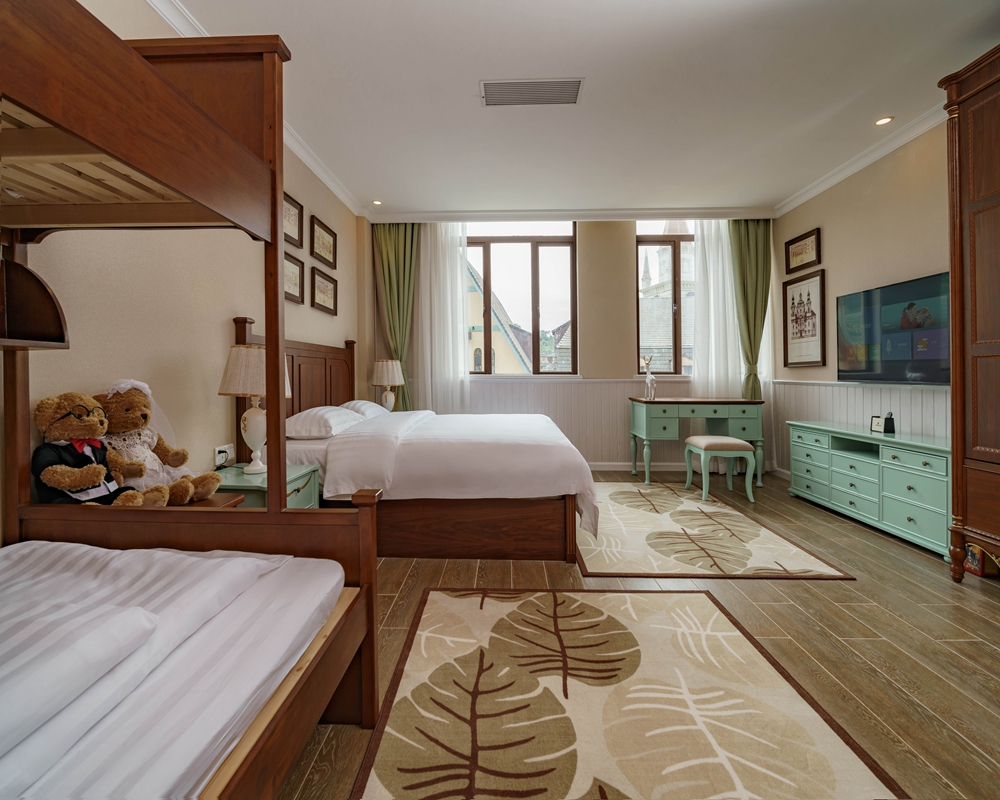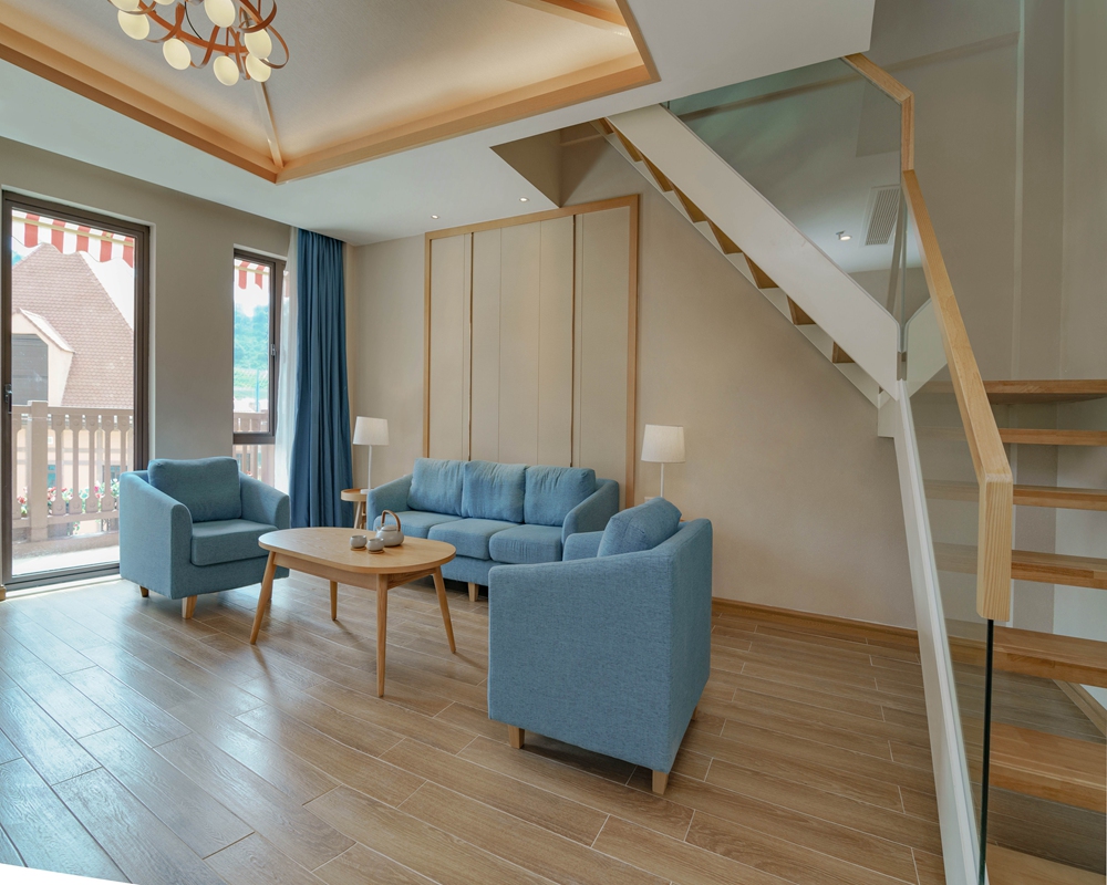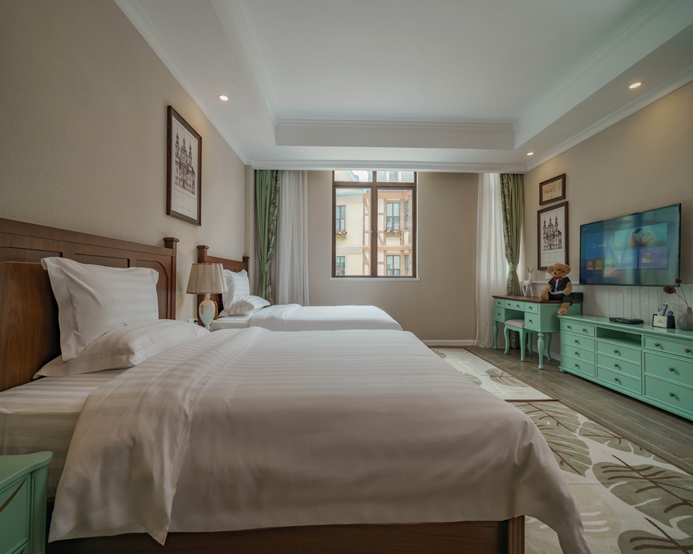 巧克力王国酒店提取英伦风情建筑精华,建筑面积约7000平方米,拥有113套浪漫温馨的客房,且设有平层和复式房。清新的异国情调,让您仿佛置身于质朴而浪漫的世外桃源。另设有餐厅、会议室等配套设施。