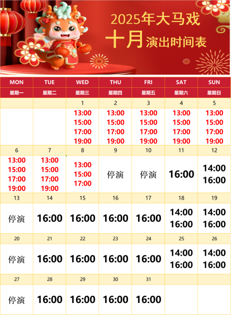 全年 10:00-20:00开放,具体演出时间以景区当天公布为准。