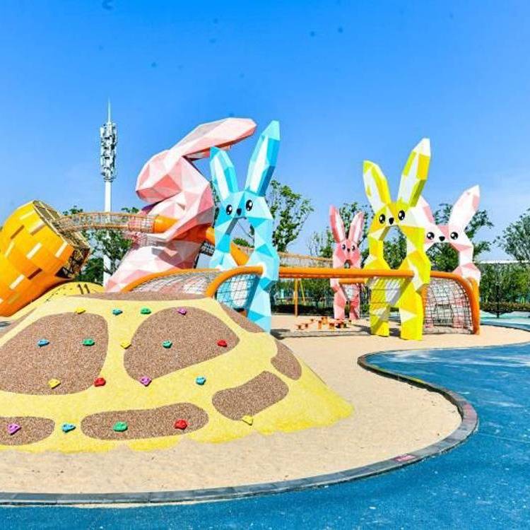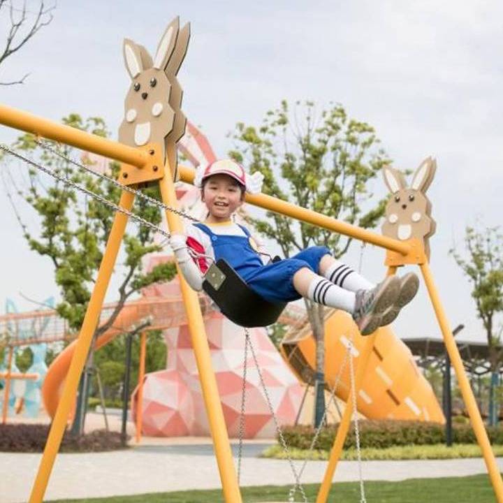 这里除了小兔纸,还有它的长颈鹿伙伴搭成的秋千、攀爬区...