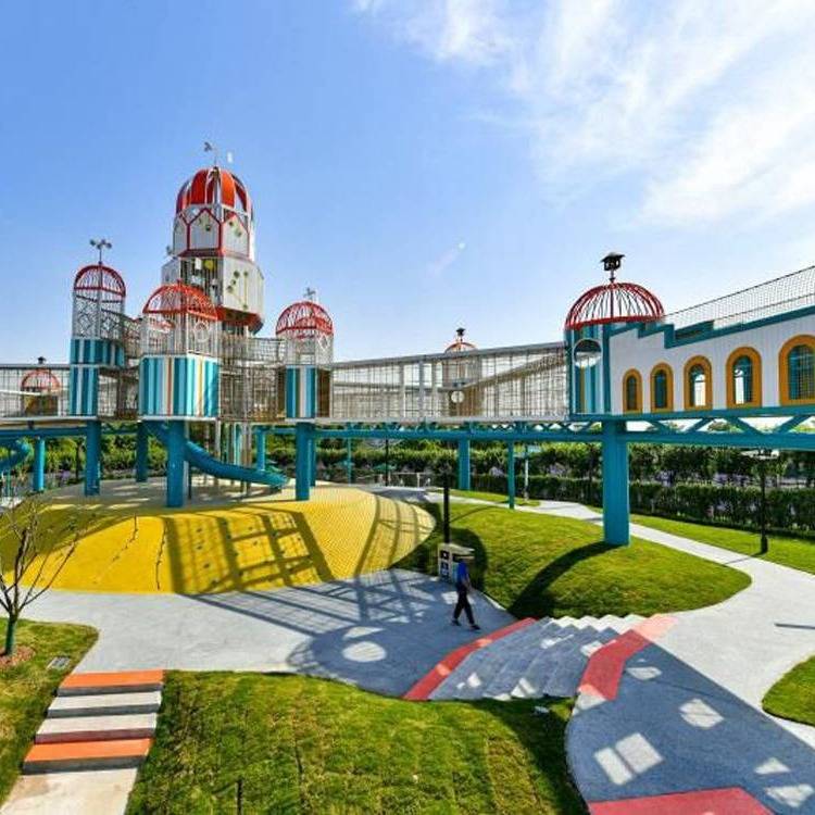 入口出口多样摇晃的栈道、攀爬网、曲折的滑梯...