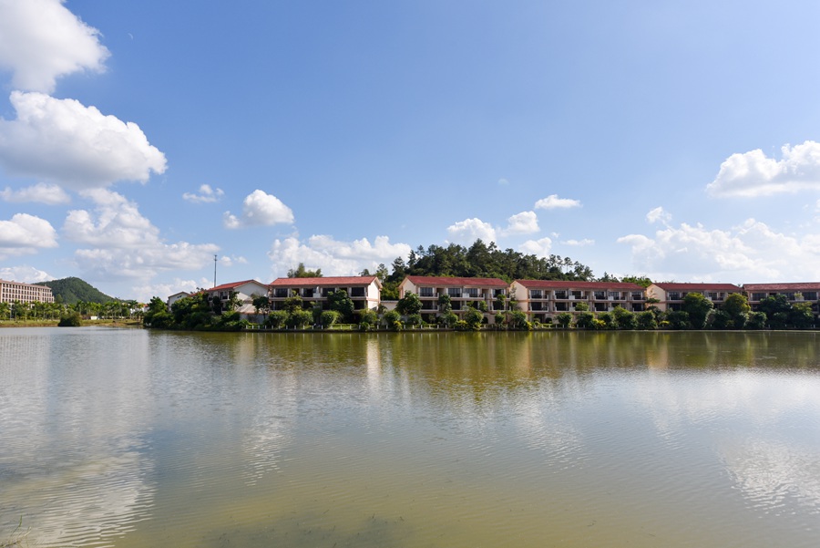 康桥温泉度假村坐落在风光旖丽、环境优美的台山市白沙镇,北面为现存的自然村庄,东、南面有青翠的小山丘连绵环绕,一条蜿蜒曲折的小河从山谷流向美丽的村落,晶莹剔透的温泉从小河中冒出,烟雾缭绕,犹如仙境。
