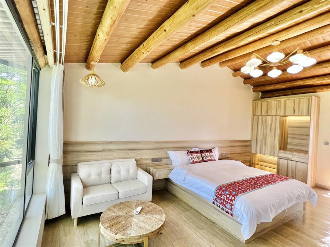 设计特色:民宿在设计上,保留千年瑶寨青砖黑瓦的建筑特征,青砖的厚重感和沉稳的色调,给人一种历史悠久和稳重的感觉。同时还保留了房屋的木结构,木结构在青砖瓦房的设计中起到了至关重要的作用。给人以温馨清新的视觉效果,让人仿佛置身于大自然之中。木结构与青砖的搭配,使得整个建筑既古朴典雅,又充满了自然的气息,形成了一种独特的建筑景观,打造出既有现代舒适感又不失传统韵味的居住空间。