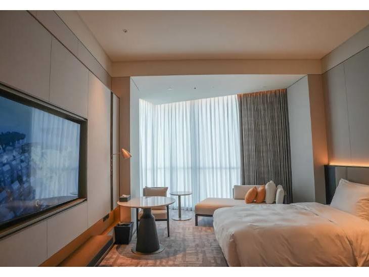 客房全景落地窗如画卷般展开,将外界美景尽收眼底。