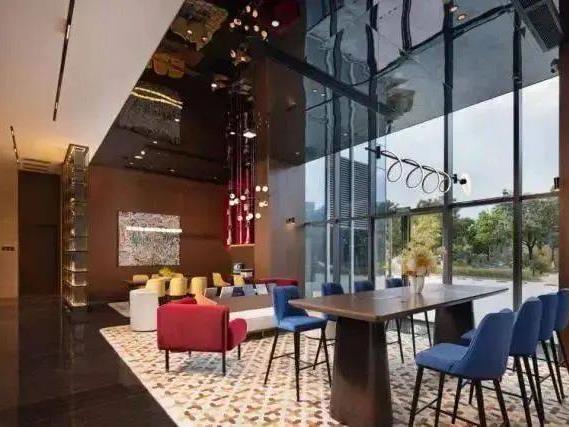 在大堂,一个精心设计的蓝色欢迎区成为了焦点