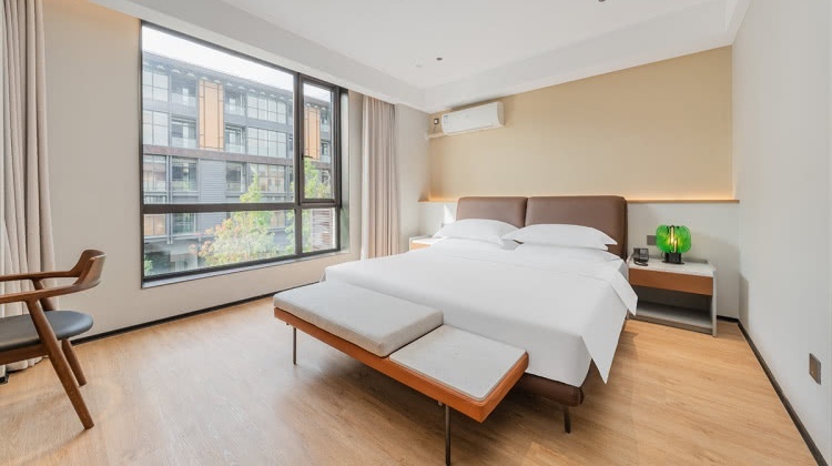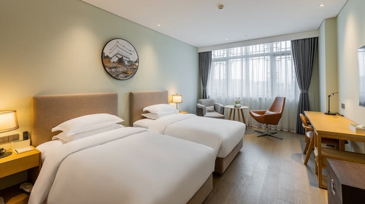 房间以地方传统建筑风格为主调,融入现代装修风格,格调高雅,房间临景古镇街景、酒店水景内院及空中花园等景观,赏心悦目。