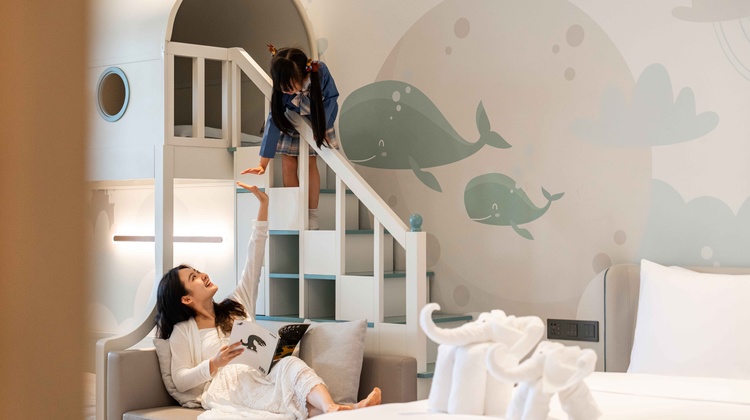 深受二胎家庭喜爱的“1大床+1高低床”的豪华主题亲子房,51㎡超大面积宽敞舒适,自带16㎡大阳台,有滑梯、小木马、乐高玩具,房间简直就是娃的游乐场,酒店还有海马儿童乐园,真真玩到嗨!