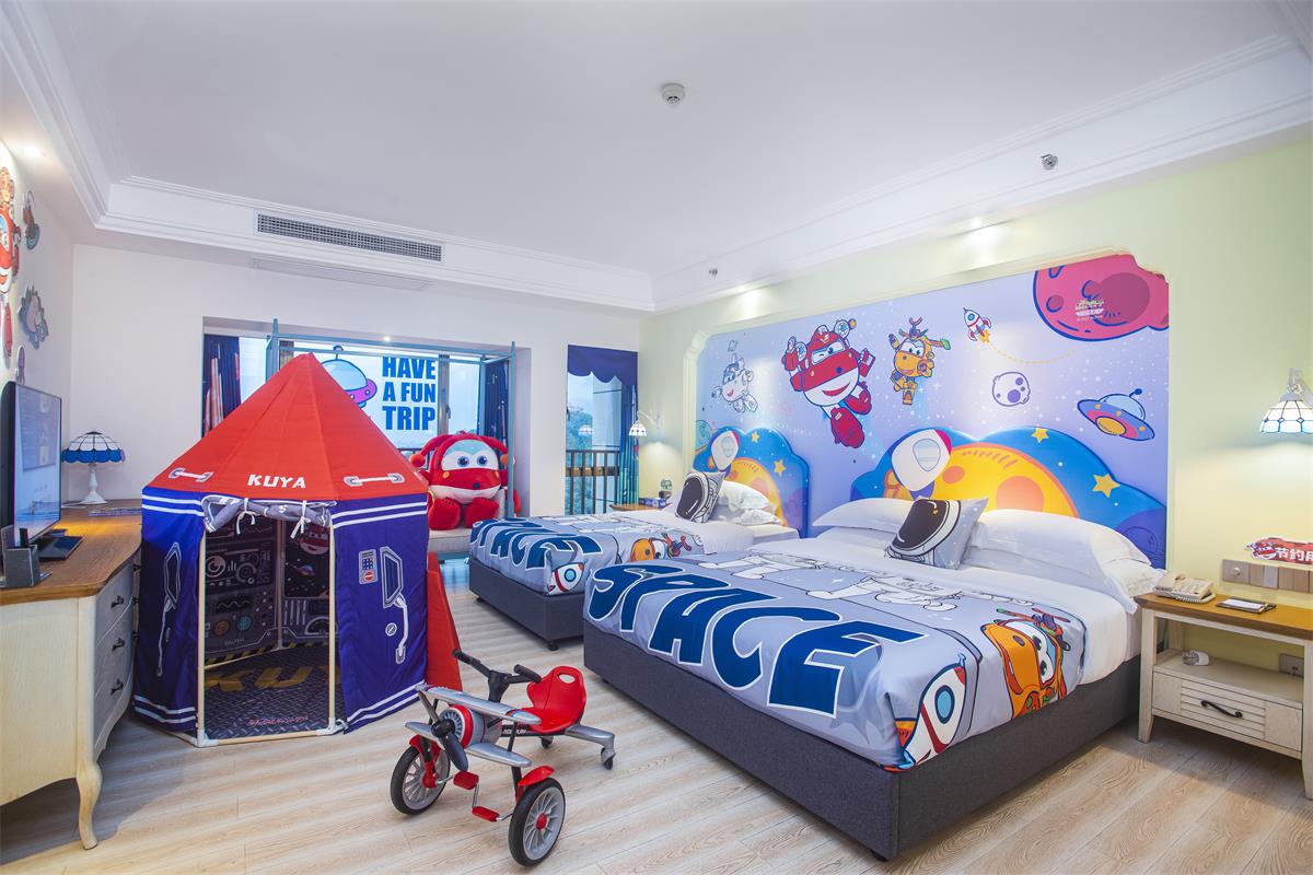 欢迎来到超级飞侠的世界!为亲子出行的游客打造的超级飞侠酷芽亲子房可爱的布置令人眼前一亮,童心大发。