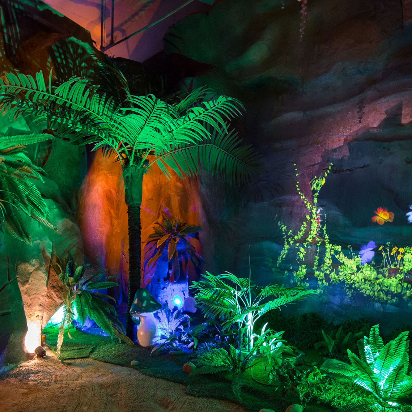 “恐龙探险乐园”是以恐龙为主题的探险乐园,把3D-Mapping、全息投影、巨型天幕、感应装置、穹幕电影等黑科技融入探险历程中,各种仿真细节让游客仿佛置身于白垩纪元!