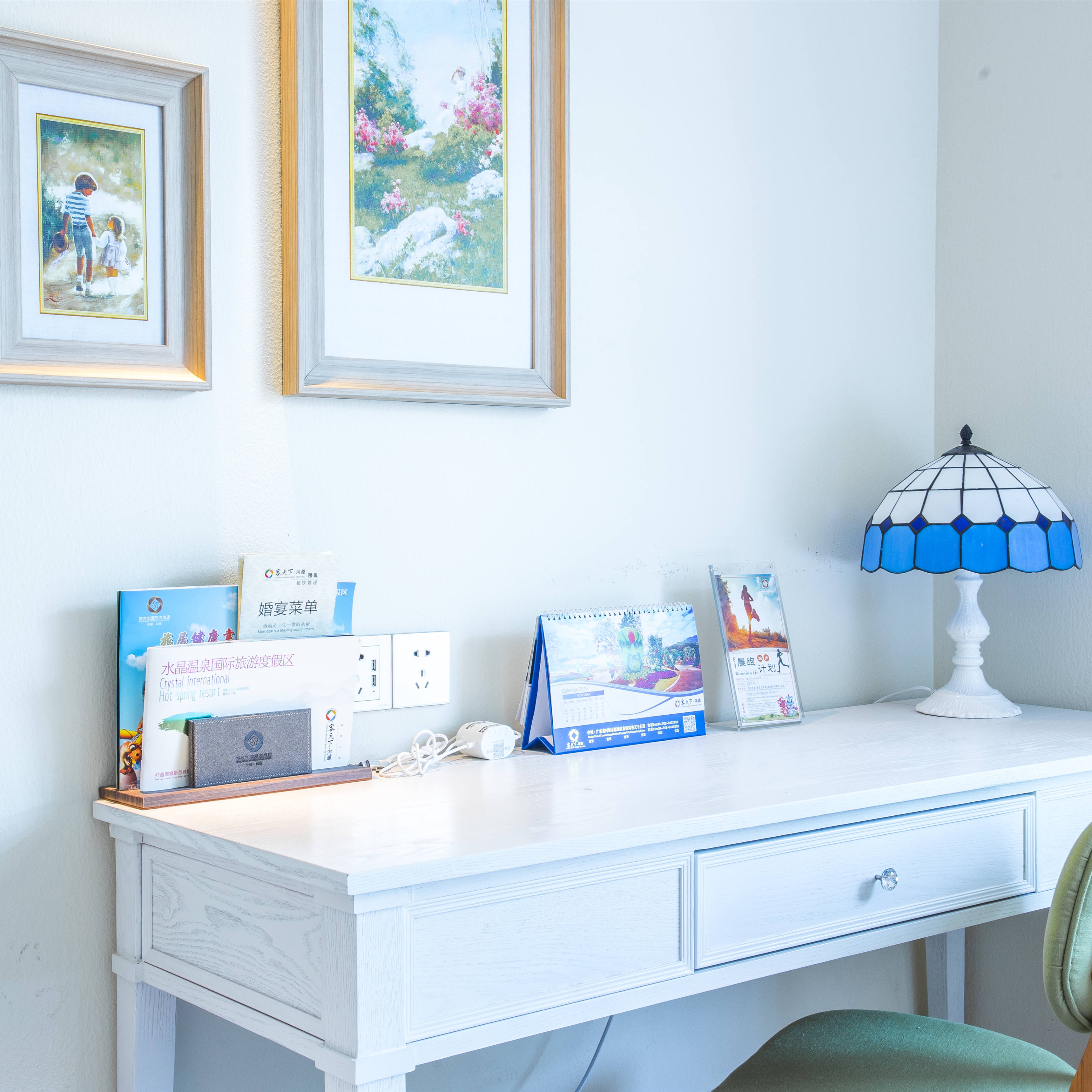 1、位于设有水晶氡温泉、醉蝶谷花海农庄、养生SPA馆、KTV、7D电影、真人CS野战、辉特林山地越野车等旅游配套项目的温泉小镇。