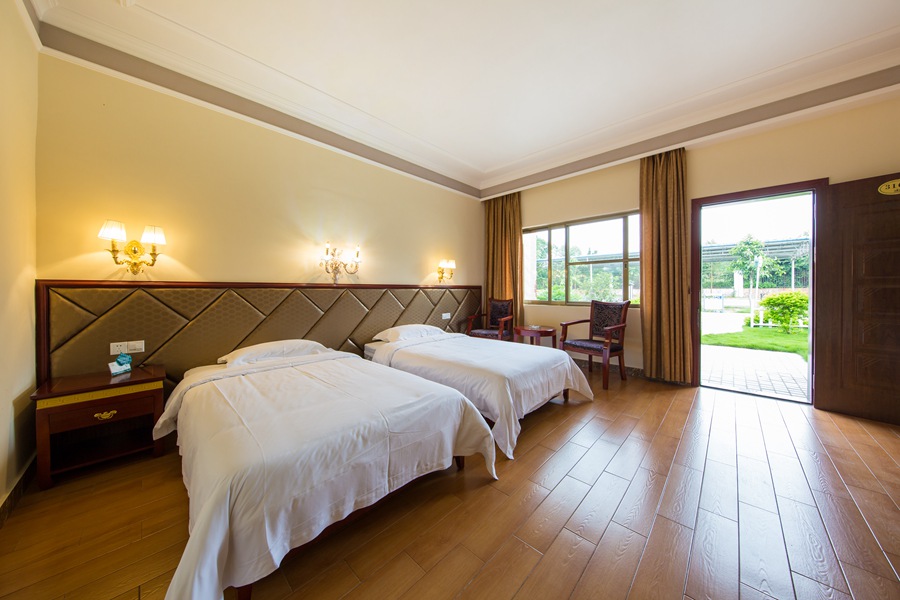 分布在主楼三层和贵宾楼一至三层。房内铺设地毯,且在阳台与房间之间都有落地玻璃相隔。