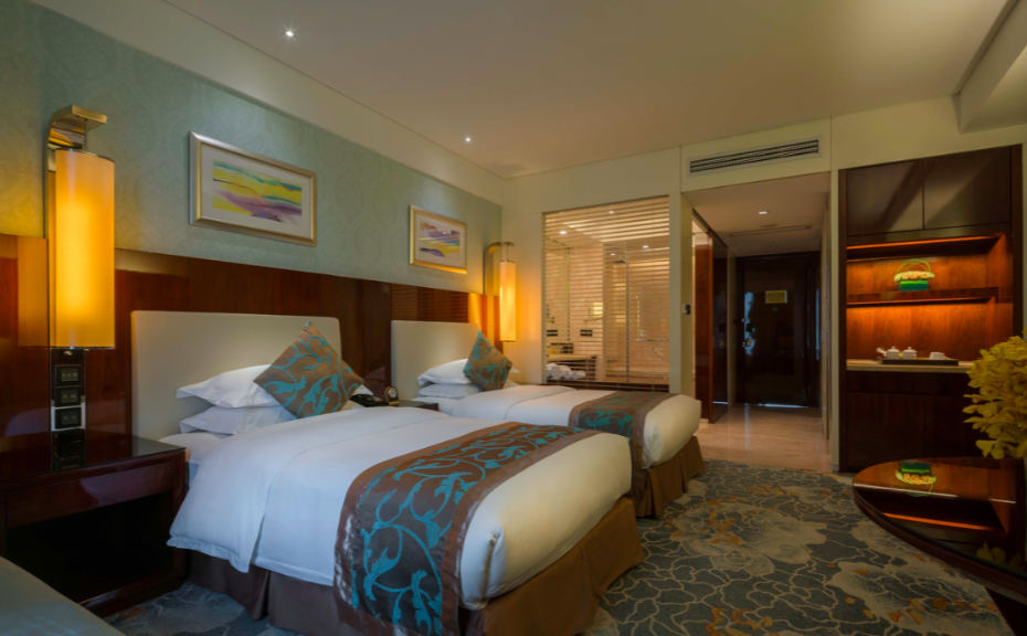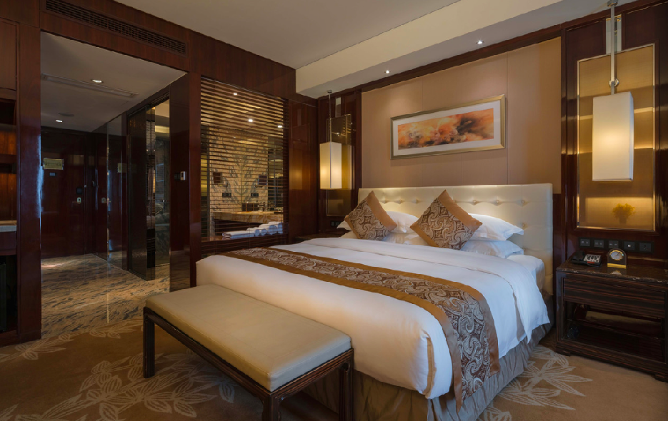 客房宽敞明亮,卫生间干湿分离装修气派,布局考究,格调雅致。