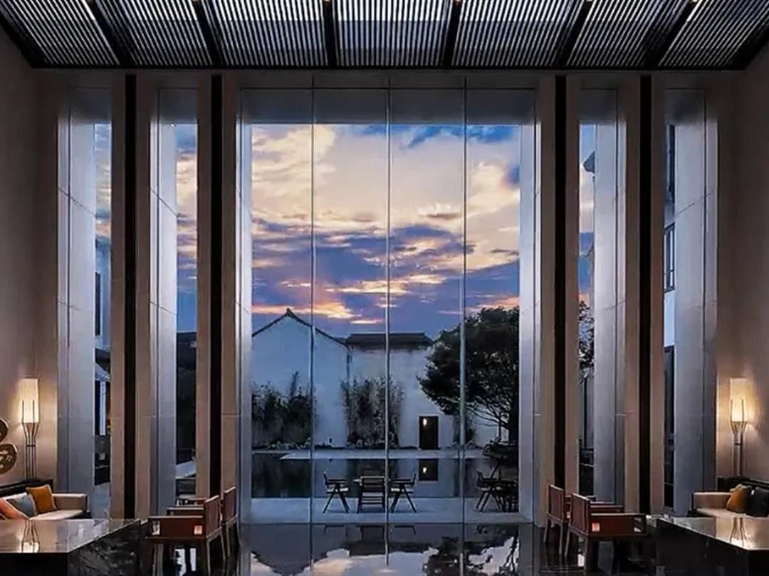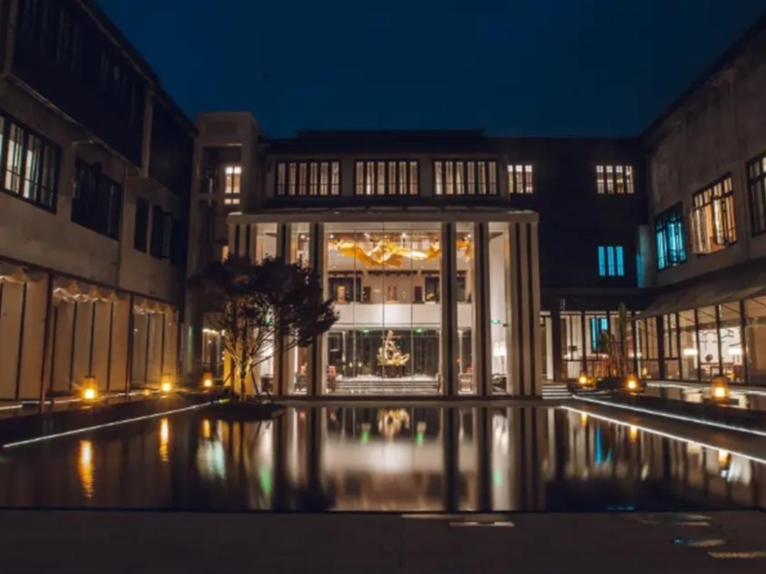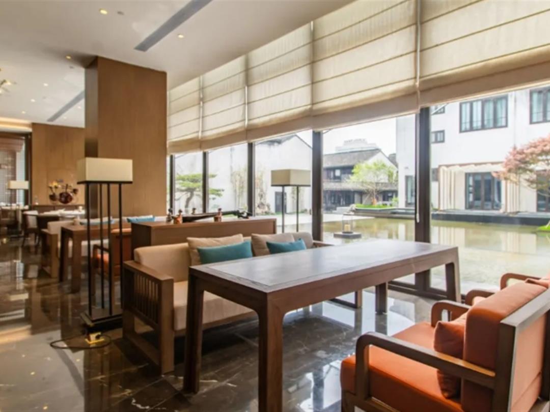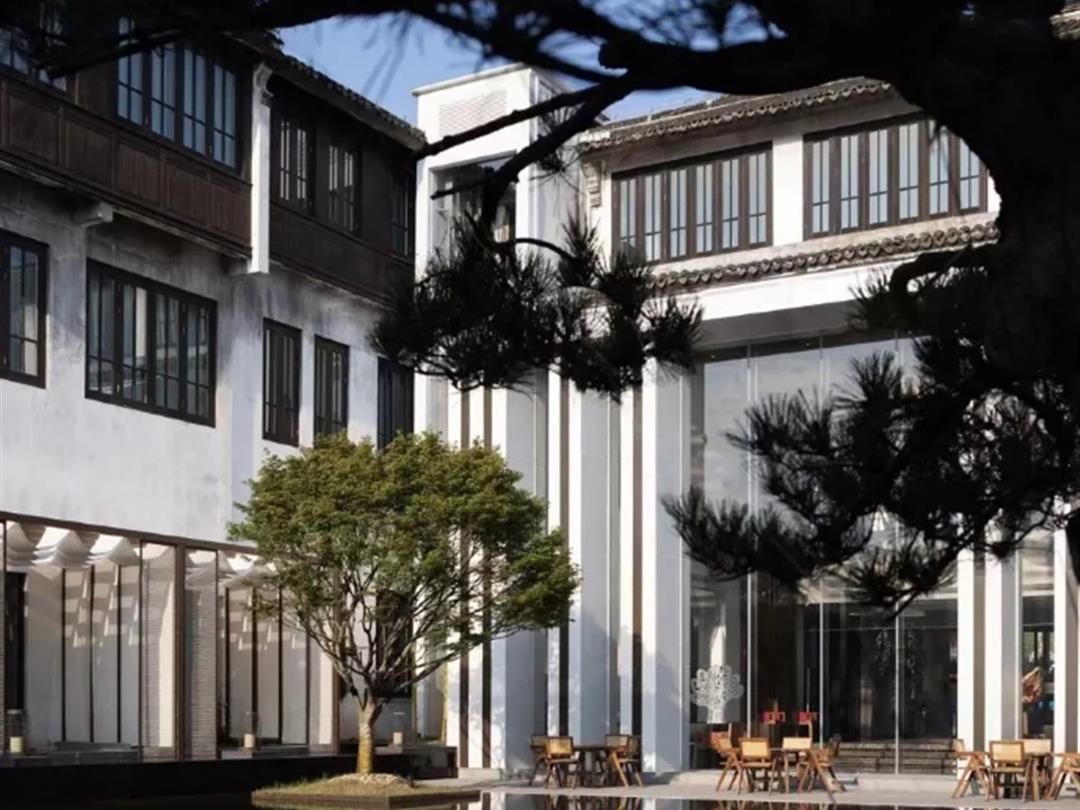 除了基础的大床和双床,还设计了庭院房、亲子房和家庭套房,内部设计现代简约,外观古朴江南。
