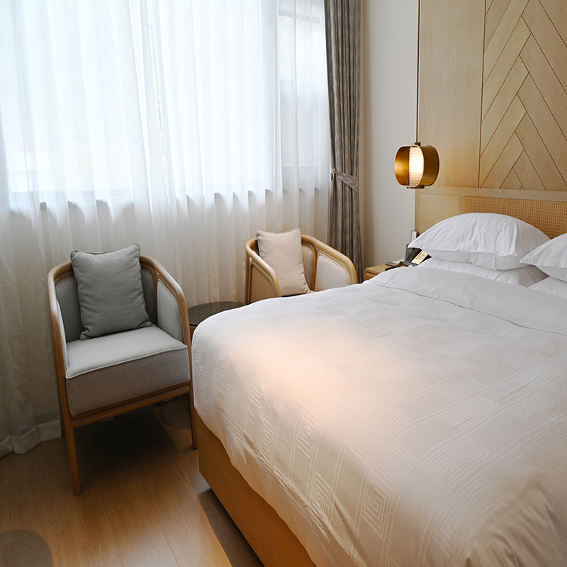 客房宽敞温馨,窗外风景怡人,采光较好;舒适大床,让您沉醉惬意,一觉到天亮。