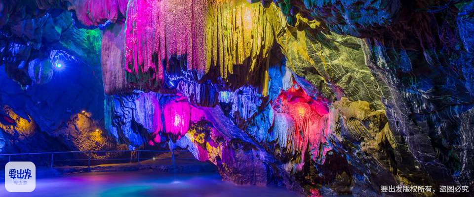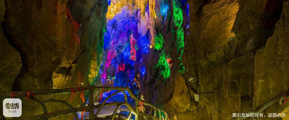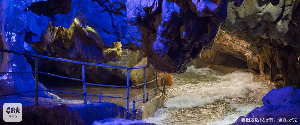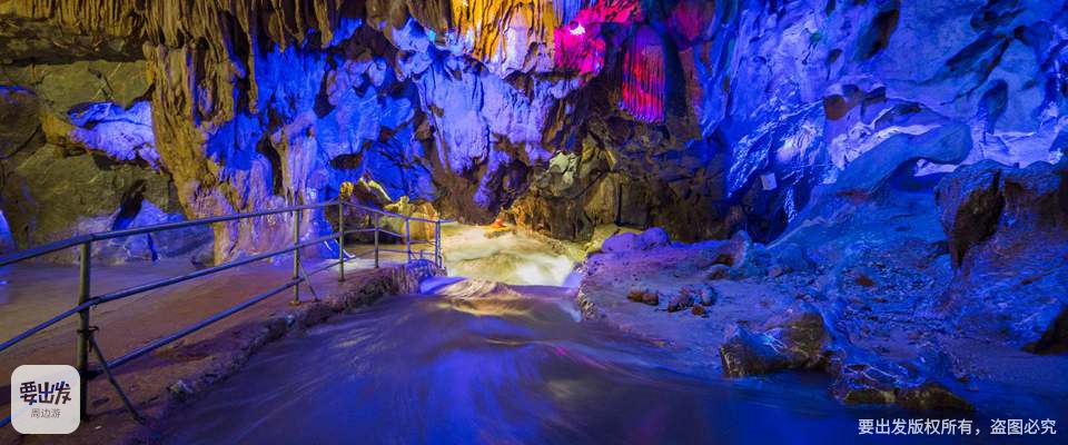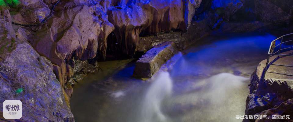 溪流穿山而过的七彩岩洞,三步不同景,九步一重天。