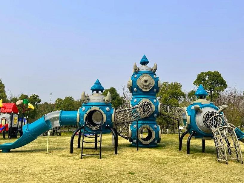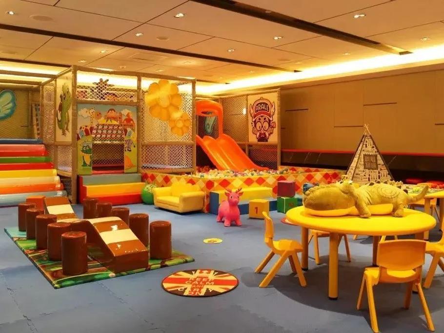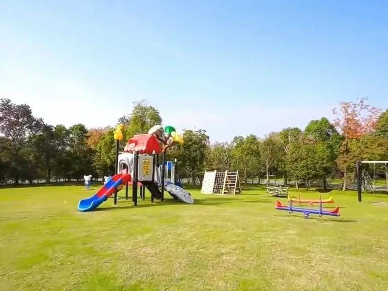 室外儿童乐园位于酒店的大草坪之上,有滑梯、攀爬架、跷跷板等。