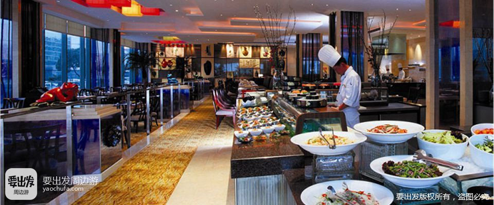 自助餐厅提供海鲜、熟食、冷盘、寿司、甜品...