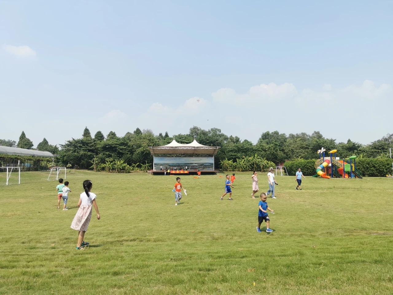累了,大草地就是一个很好的休憩地方,小朋友们是永远不会累的,拓展区正合心意,你穿过来我爬去,看我的十八班武艺。