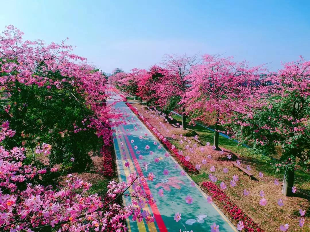 数百棵红粉木棉,花开正艳!