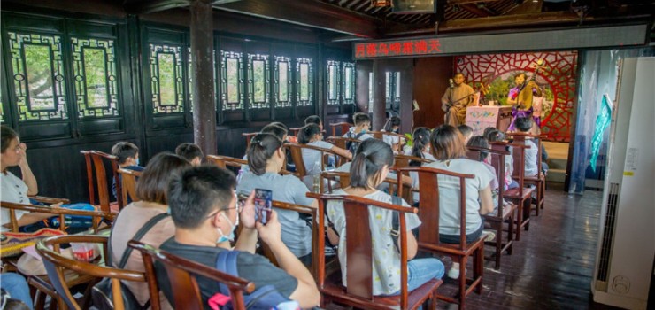生动有趣的台词,演员精湛的表演,讲述苏州丰富的特色民俗文化艺术,演绎着一个风云动荡的清末乱世,一户商海沉浮的姑苏世家,一段爱恨交织的儿女情长,一部荡气回肠的家国旧梦的故事。游客随着演员们在严家花园内移步换景,感受尚贤堂特色的婚俗风情,身临环山草庐家宴听戏,静坐明是楼欣赏评弹表演,倾听后花园亭中离别情······