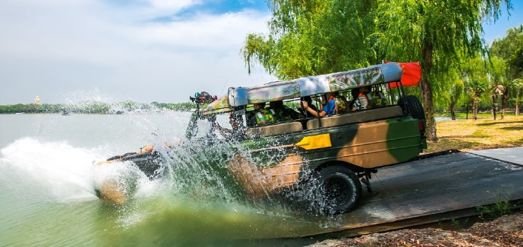 每个年轻的灵魂都曾有过一个能和副班长一样报效祖国的梦想,来大纵湖景区乘坐“水陆两栖”战车,体验入水时的紧张刺激,水面战车航行的平稳、急速。