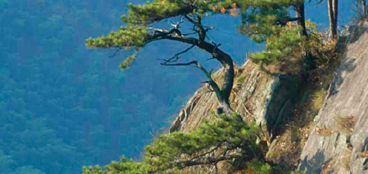 石岭景区像这种规模的潭总共有十八个之多,石岭又有九湾 十八潭之说。可以看见大石头上长着许多植物,其中有不少是花树,较有特色的当属杜鹃花。杜鹃花又叫映山红,泛指各种红色的杜鹃花,形容它那如火如荼的鲜 红的光彩把山都映红了。杜鹃花多为高一二米的灌木和小乔木,亦有高仅几厘米、匍匐于岩石地面的旬行杜鹃、紫背杜鹃,也有高达数丈、繁花万朵的大树杜鹃、巨 魁杜鹃。杜鹃花的顶成伞形花絮,由数朵钟状或漏斗状的花朵组成,宛如有一个饱满的绣球。这里的杜鹃花就是属于大树杜鹃,它们长在巨石上,远远看去,仿佛石上生花。
