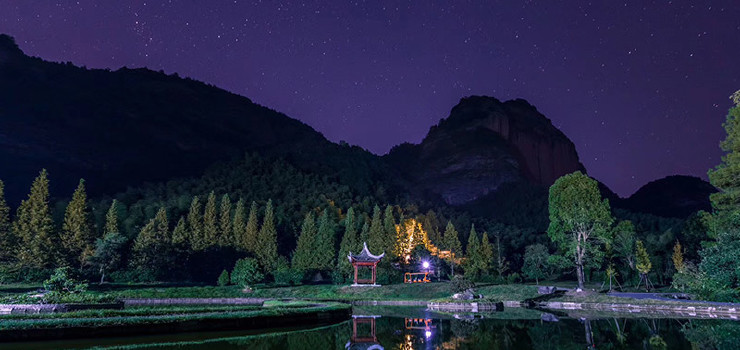 朝见日出,夕送斜阳,夜观明月,登峰攀顶可赏旖旎天象与丹山碧水相辉映;当旭日东升时,红岩顶上霞光万道;当日落西山时,幻景台前令人回味。