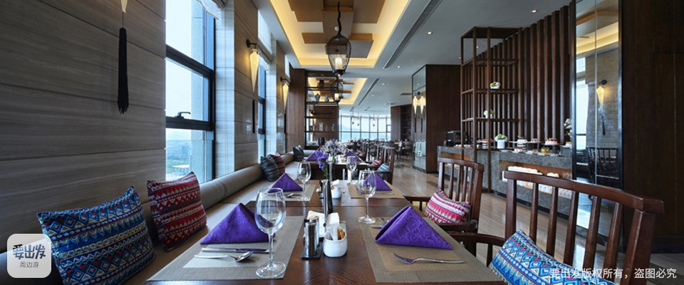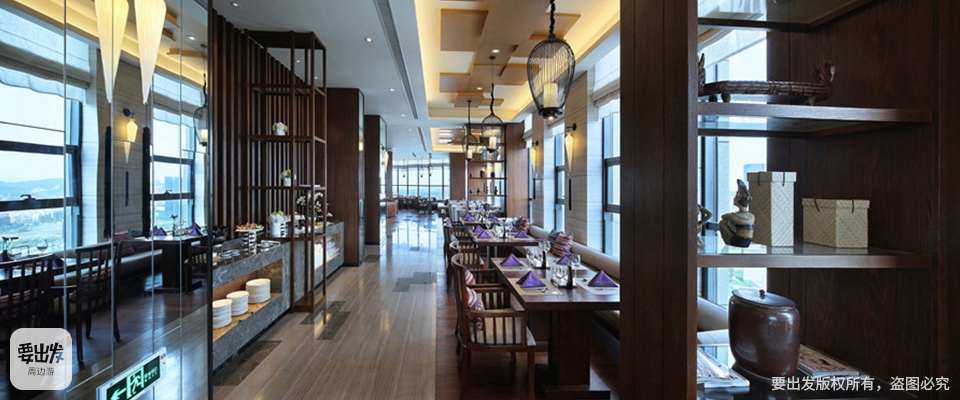 四季花园餐厅位于酒店26楼,设计师将全玻璃房与空中花园相结合,400㎡的超大用餐空间可同时容纳120余人用餐。26楼的视觉体验,随便一拍就是美美哒大片。