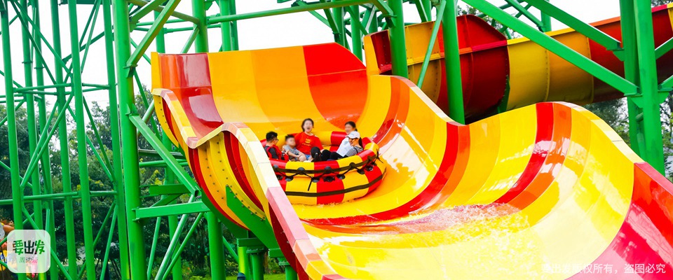 乘着水浪,在色彩缤纷的滑梯上蜿蜒而下,时而刺激俯冲,时而领略周围的美丽花海,享受水花四溅的惊险与畅快。