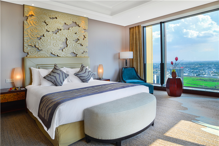 酒店高约248米共50层,设计上结合了线条和光影变化,成为海宁颇具地标性的建筑。