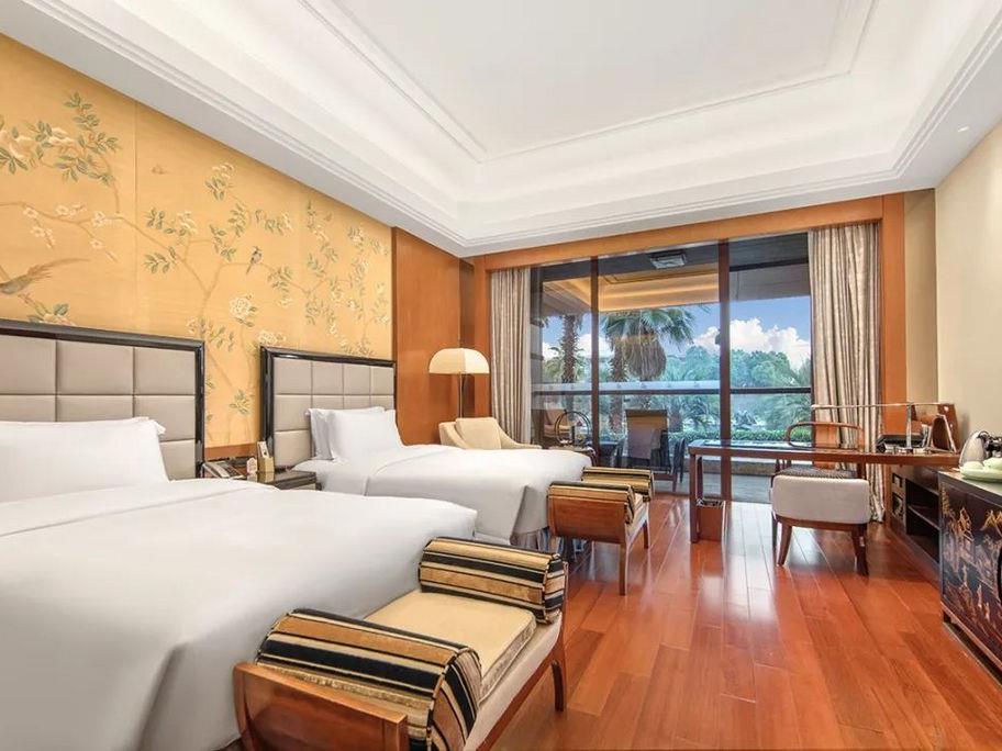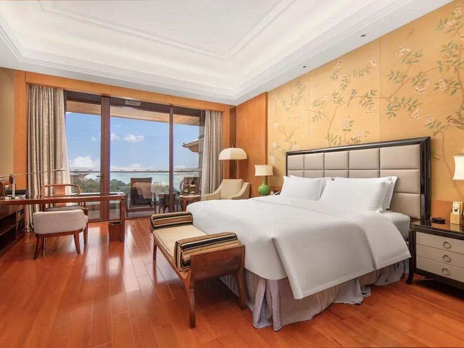 一期二期客房(含套房)加起来共有242间,40㎡起,每间推窗即可见景。其中,一期客房大部分配有私密的观景阳台;二期客房大部分都配有露台、浴缸、金可儿床垫等,非常适合举家出游。