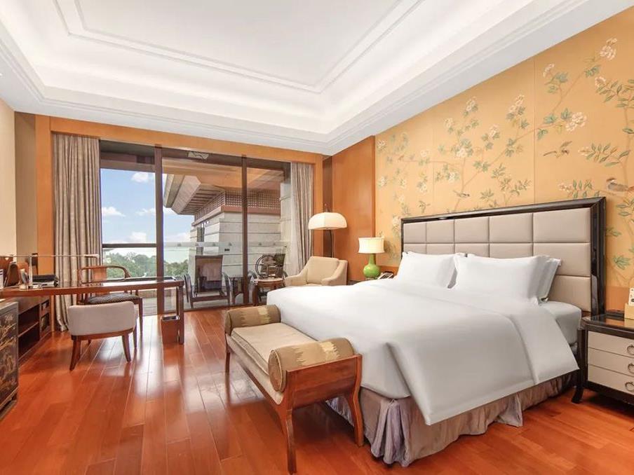 它选址东太湖一线观景席位,三面环湖而建,晨起散布、傍晚看湖畔夕阳,皆可毫不费力地包揽至美太湖风光。酒店占地15万多平,单单是花园面积就达4.5万平,园内种着百种植物,四季不同景,堪比“收费公园”。