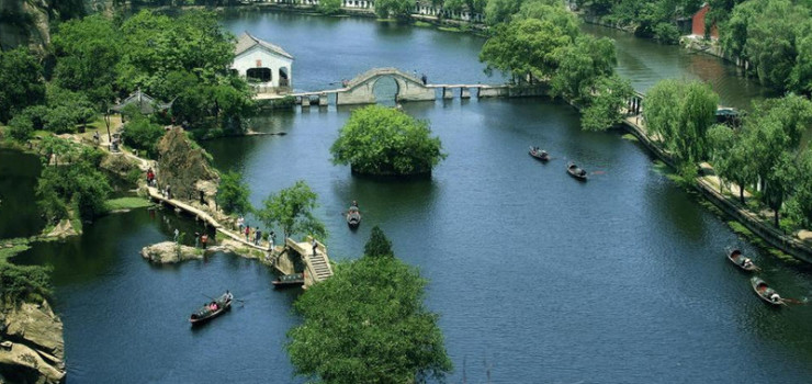 湖内有陶公洞、仙桃洞,很富情趣。小舟入洞,如坐井观天;碧潭岩影,空谷传声,景色尤称奇绝。湖畔 有听湫亭、饮绿亭、香积亭、扬帆舫、稷寿楼、小稽轩、桂岭等景点,霞川桥、秦桥、万柳桥等各式古桥横跨 两岸。沿石磴上山,可一览江南水乡风光。