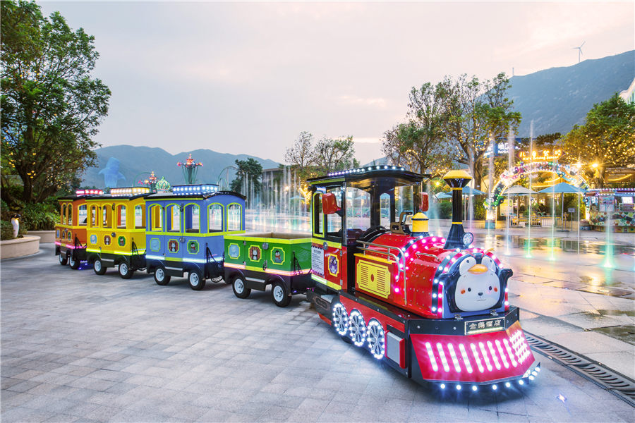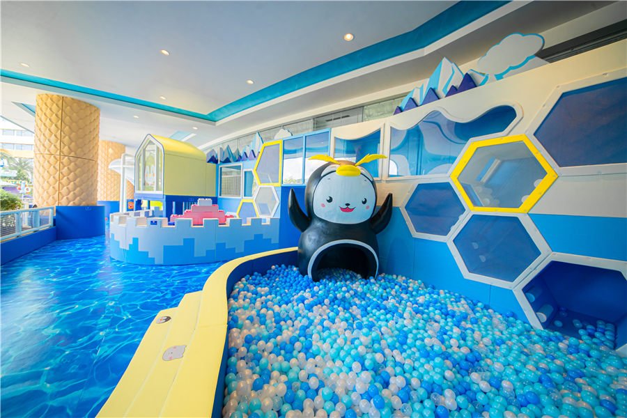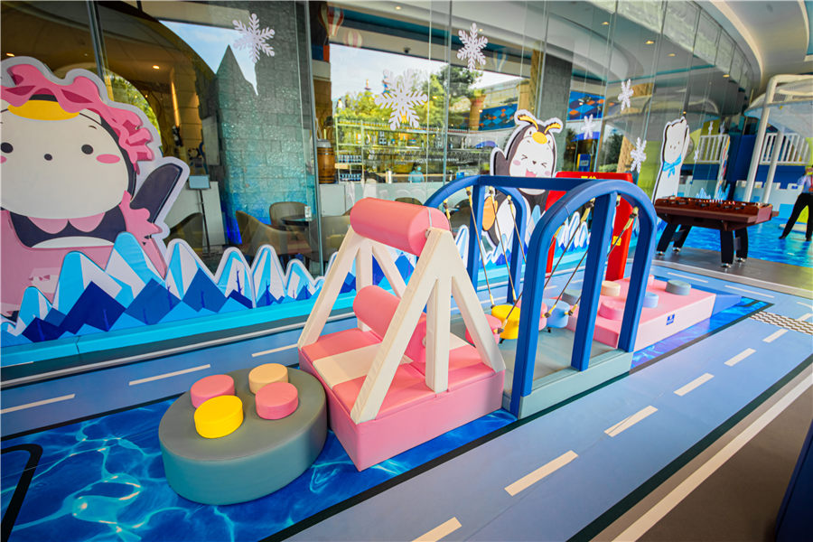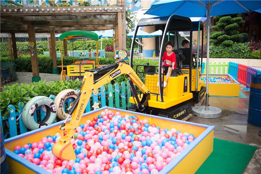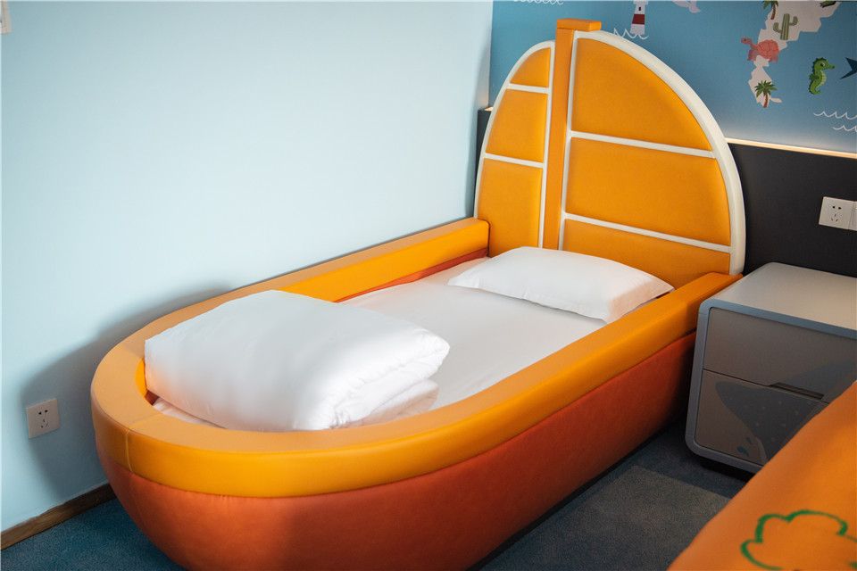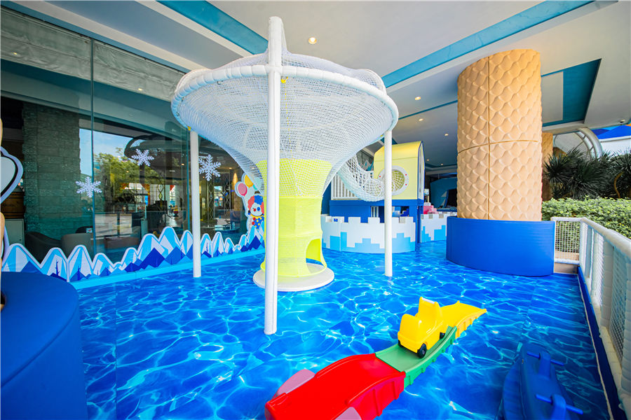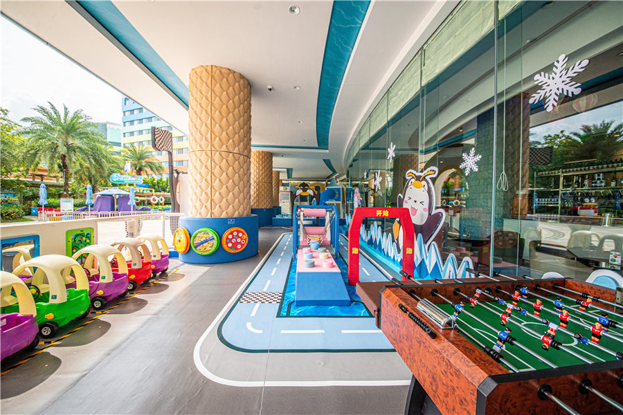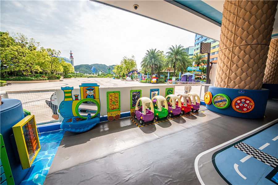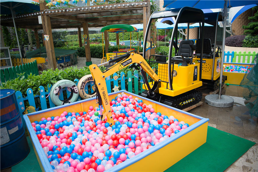 - 酒店设有儿童游玩项目:儿童驾校、小火车、挖掘机、喂奶鱼