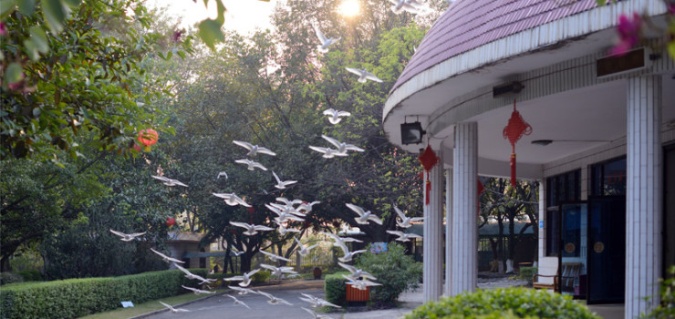 园区内建筑仿照山东曲阜孔庙建造,充满了古建筑风格。