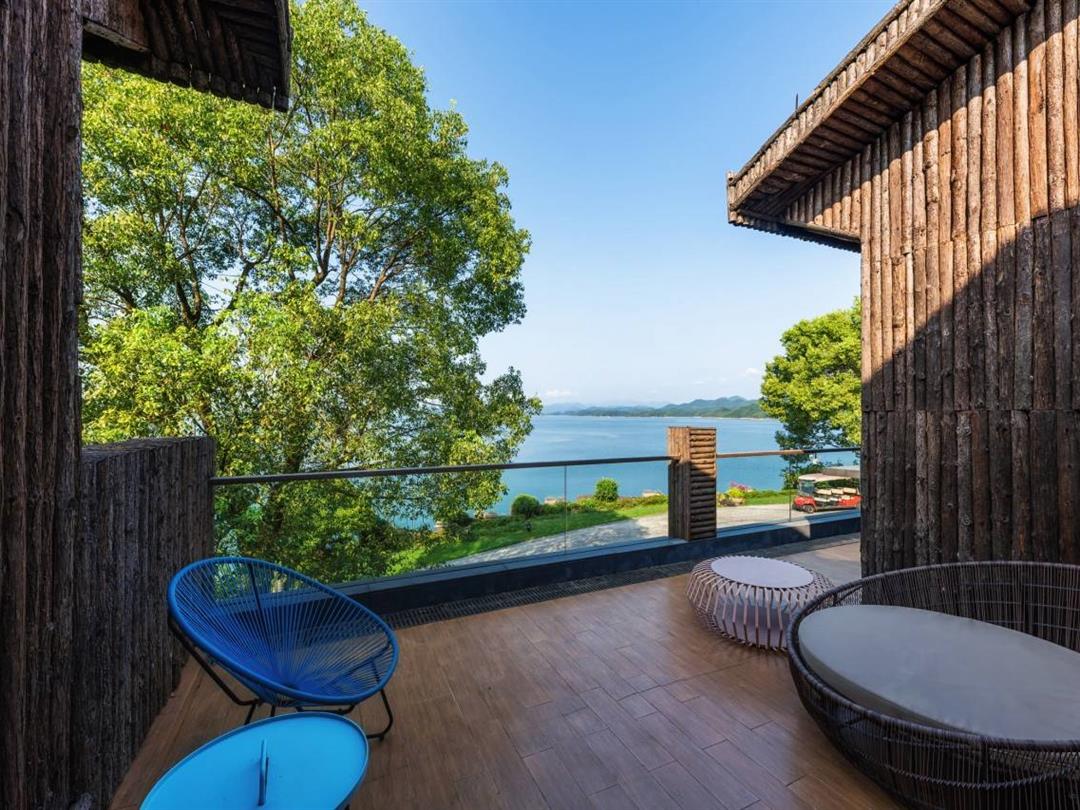 客房的每一间都自带大面积玻璃窗,湖光山色一览无遗,随时随地都可感受千岛湖的诗情画意。部分房间配有大大的阳台,闲暇时分坐在此处喝茶聊天,好不惬意~