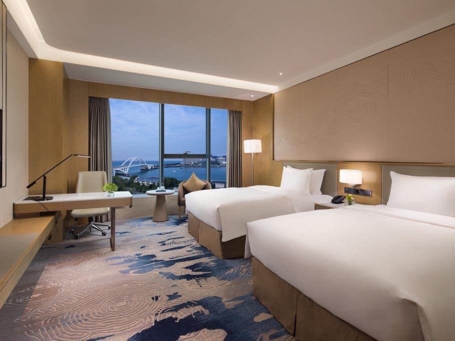 禹洲温德姆拥有400间套客房,超过九成的客房坐拥一线海景,临湖而建,一览厦门的风情,客房面积从35㎡到190㎡不等,豪华房、精选房(亲子房)、行政房、套房、公寓客房都有,满足多种需要,欢快的现代装修风格,温馨又奢华。