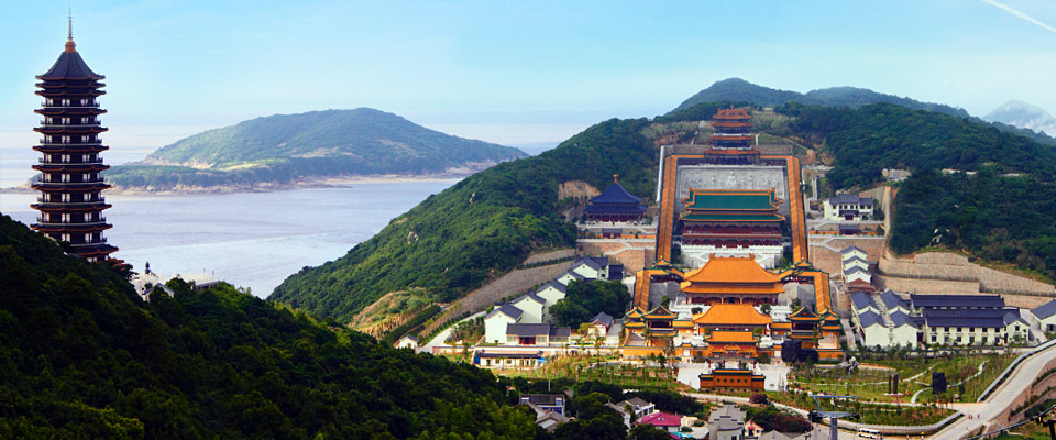 普陀山四面环海,寺庙建筑错落在山间海滨,与海天景色浑然一体,是重点风景名胜区。普陀山佛教主供观音菩萨,是有名的观音道场。观音菩萨在中国民间有着广泛影响,素有“海天佛国”、“南海圣境”之称。此处势随峰起,秀林葱郁,气顺脉畅,碧波荡漾。莲花洋彼岸的朱家尖,隔海侍卫;双峰山坡麓的紫竹林,潮音频传。身临其境,如临极乐国土,尘念顿消。