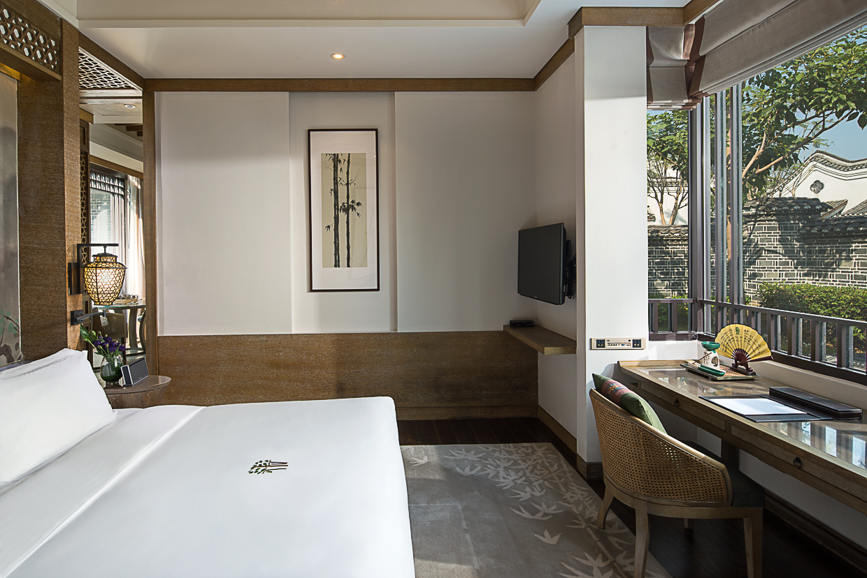 酒店建筑是徽派烙印的桂北民居建筑群,小青瓦屋顶高低错落,青石板路的小巷,自成一景,打卡拍照一绝!房间内采用了黑木、竹子、大理石等天然材质,处处散发着中式美学的气息,推开窗子就是绝美山水。酒店还为住客准备了丰富的体验活动,宅在酒店也不用担心无聊,完全就是为度假而生的遁世天堂