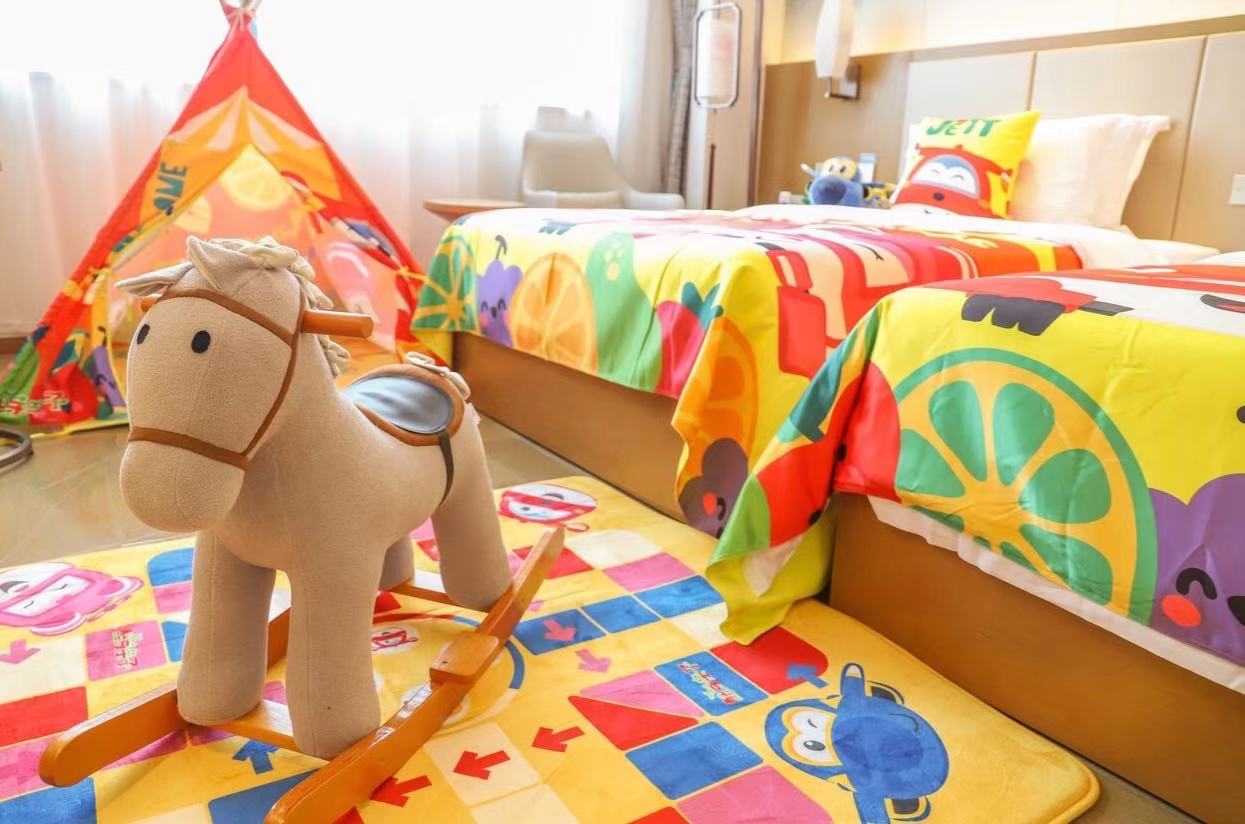 超级飞侠的床品、公仔、儿童帐篷、木马等设施,