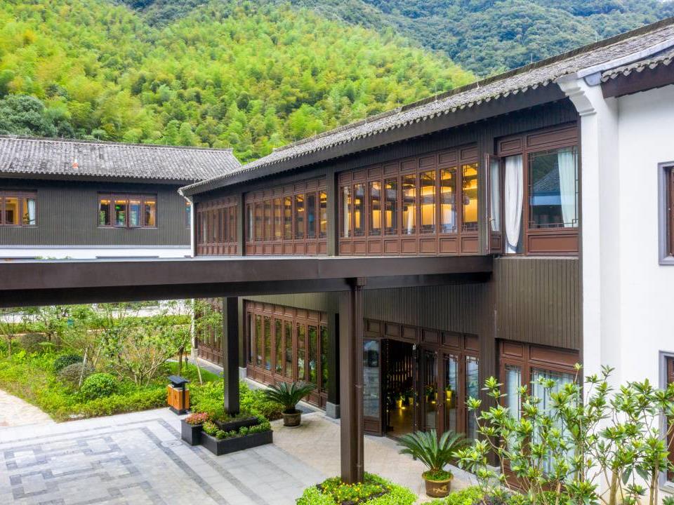 酒店外观融合了江南山谷地貌的自然风情