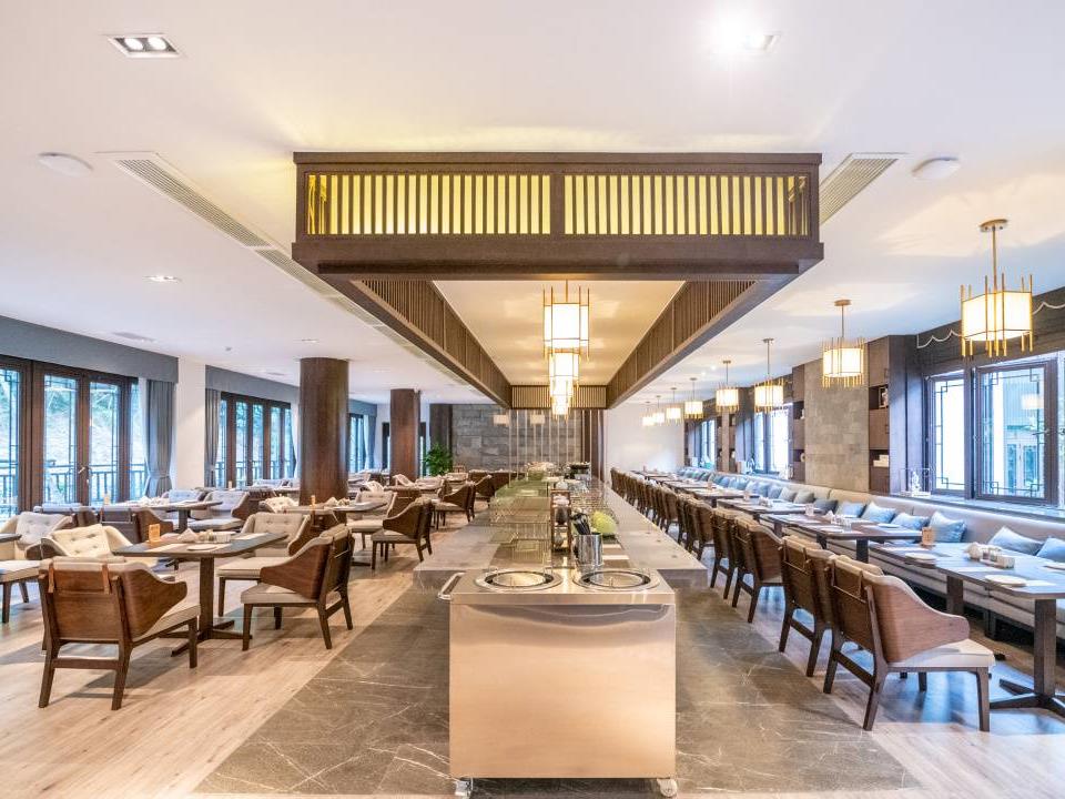 可同时容纳80人的自助餐厅