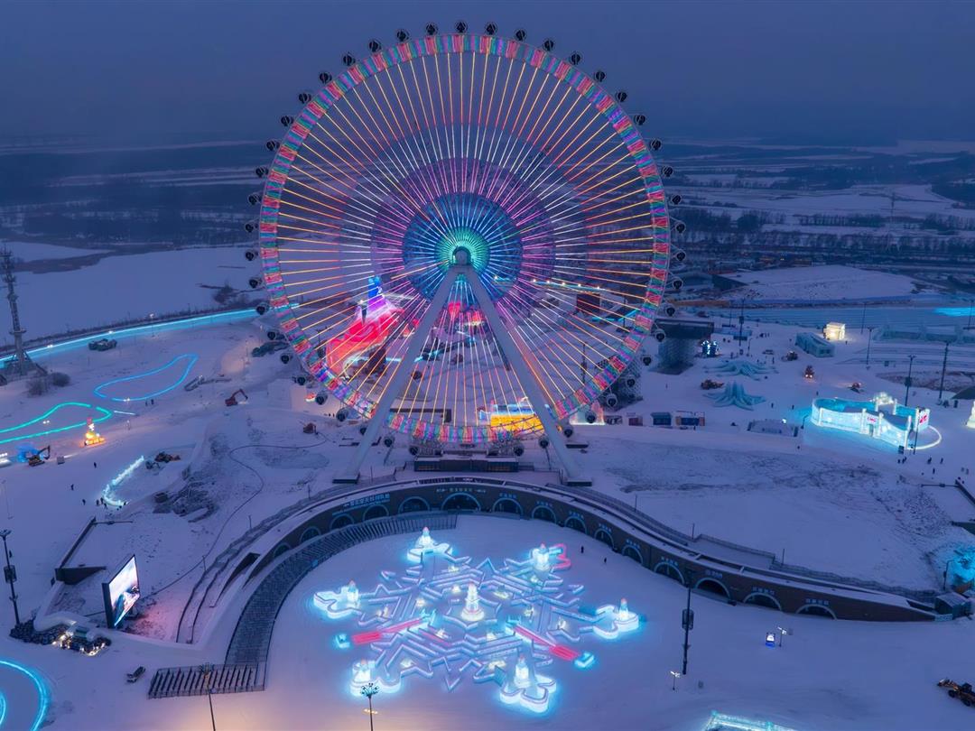 推荐游玩路线:大滑梯 → 摩天轮 → 祈福殿 → 冰雪宫殿 → 娱雪乐园 → 园内冰雪设施 → 哈冰秀。