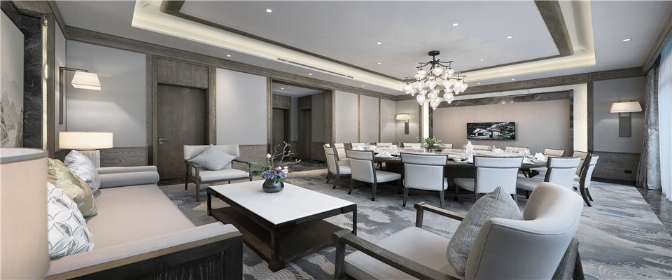 走廊的地毯、豪华餐饮包厢内的画作