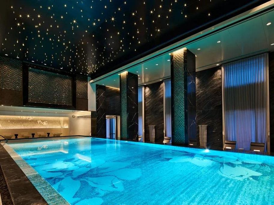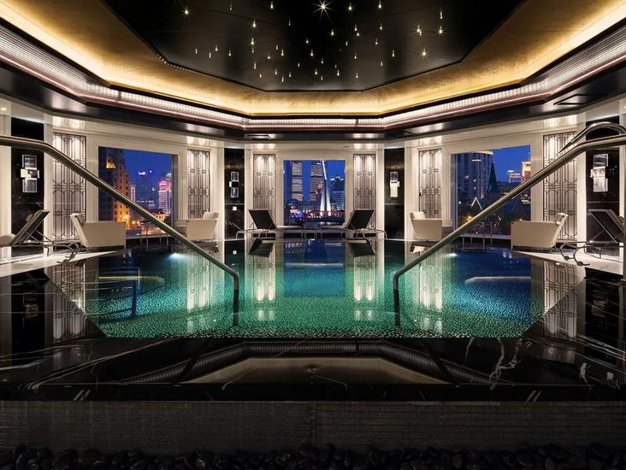 室内恒温泳池,颜值+内涵兼得。泳池20米长,入夜后灯光打开时,就像蓝色星空一般梦幻,很出片!泳池旁边,还”藏“着一个多边形热力池,摆放着躺椅,270°观景设计,“泡”在里面,能惬意地欣赏浦江美景。