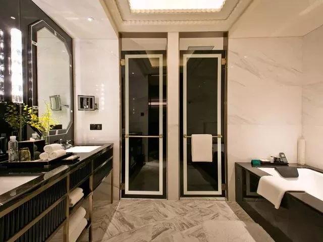 干湿分离的洗浴空间内,双洗漱台是标配,五金选用瑞典品牌Geberit;备品是澳洲Biology Smart;TOTO全自动马桶,卫浴设备为Kallista…每个细节都藏着惊喜。
