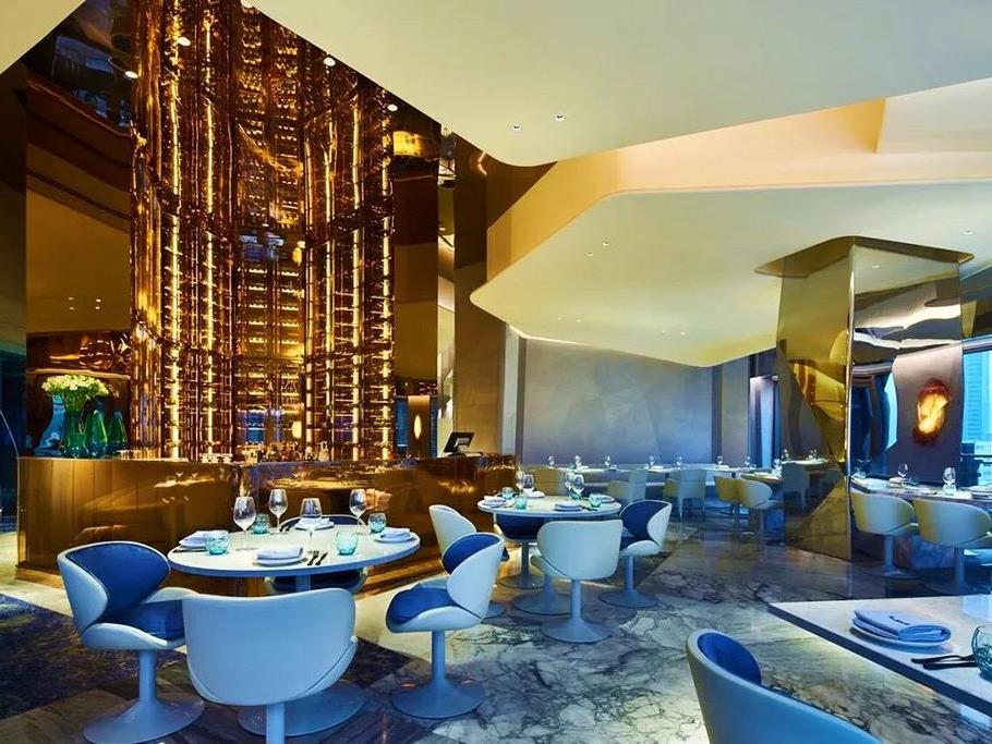 室内八角塔楼用餐区,宛若”都市会客厅“,拥有三件套+外白渡桥景观,天花吊顶惊艳四座。