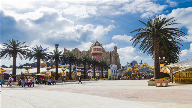 世界港口小镇上,共有18台骑乘设备,基本涵盖了陆地游乐设施的类型,连载客24人的电动火车都搬上了屋顶,巡行小镇一周300米,同时,小镇上还设有异域情调的美食街区,游乐刺激的间歇,是抚平惊魂补充体能的驿站。