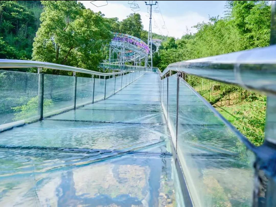 让你在飞驰中感受那份惊险与刺激。想象一下,你坐在漂流艇上,沿着玻璃打造的滑道飞驰而下,中途还有360度的大转弯,这不就是小型的过山车吗?