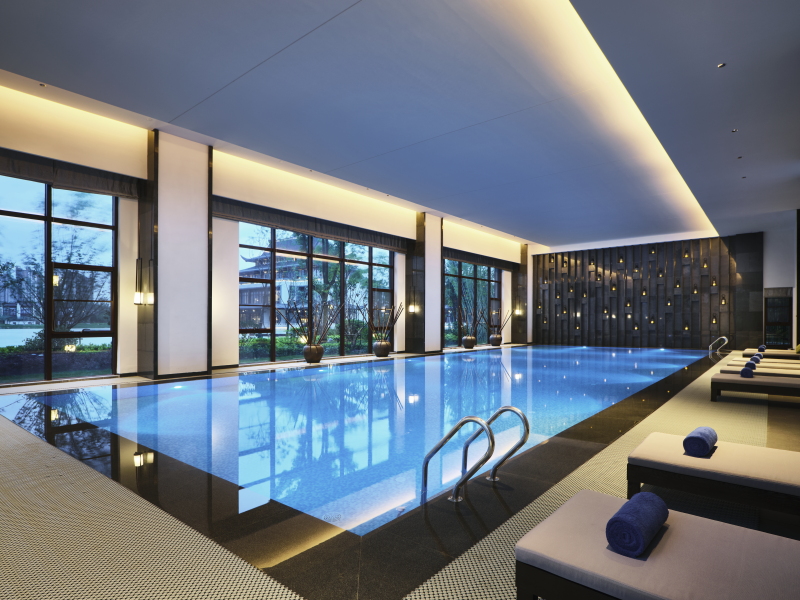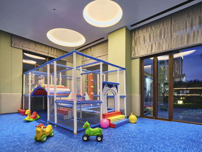 从餐厅位置继续往前,即可到达健身中心。健身房、室内儿童乐园和室内泳池等设施也很齐全,大人和孩子都考虑在列。