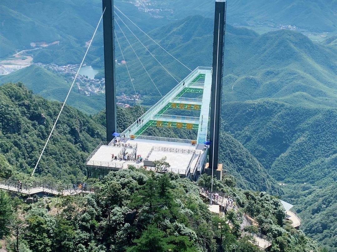 天空之阶:屹立在海拔1168米的悬崖之上,向外探出80.9米,呈独特的 A 字型延伸。全透明的玻璃桥身澄澈如镜,仿佛将天空与山巅无缝连接,构建出一片如梦似幻的天空之境。当您踏上天空之阶,瞬间仿若置身浩瀚云端,脚下是深不见底的万丈深渊,四周则是广袤无垠的苍穹,每迈出一步,心跳都随之加速,这种远离平地、突破平凡的刺激感,定会让您刻骨铭心。